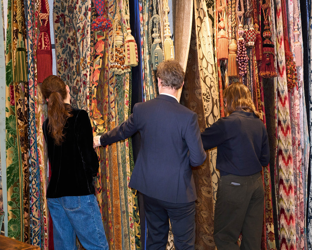 Visitors were immediately drawn into the extraordinary depth and diversity of the collections: sumptuous fabrics, intricate tassels, exclusive colour palettes, and archival designs that speak to over a century of artistry. Rediscovering these icons was made all the more enjoyable with a glass in hand, a festive playlist of winter classics in the background, and a photographer on hand to capture moments from what has become a cherished annual rendezvous.