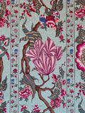 Aurea Indienne is part of the new Castle Howard Indienne Collection and honours the tradition of toiles peintes or ‘painted cottons’ that were imported into Europe from the late 16 sixteenth century. These imported cottons or calicoes proved popular for making garments and soft furnishings. To satisfy the tastes of their western customers the trading companies lost no time in producing textiles destined exclusively for European markets, but which still remained exotic in character – a factor that was  to remain key to their success.