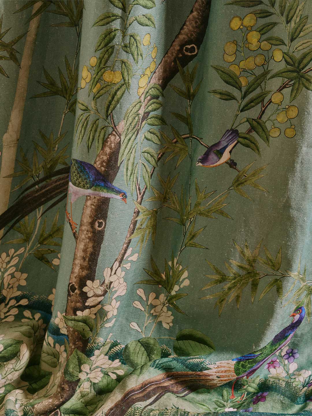 Hand painted chinoiserie stretching across the Chinese and Queen’s bedroom, Eastnor Castle, the latter named for Mary of Teck (wife of King George V) who spent the night there in 1937.